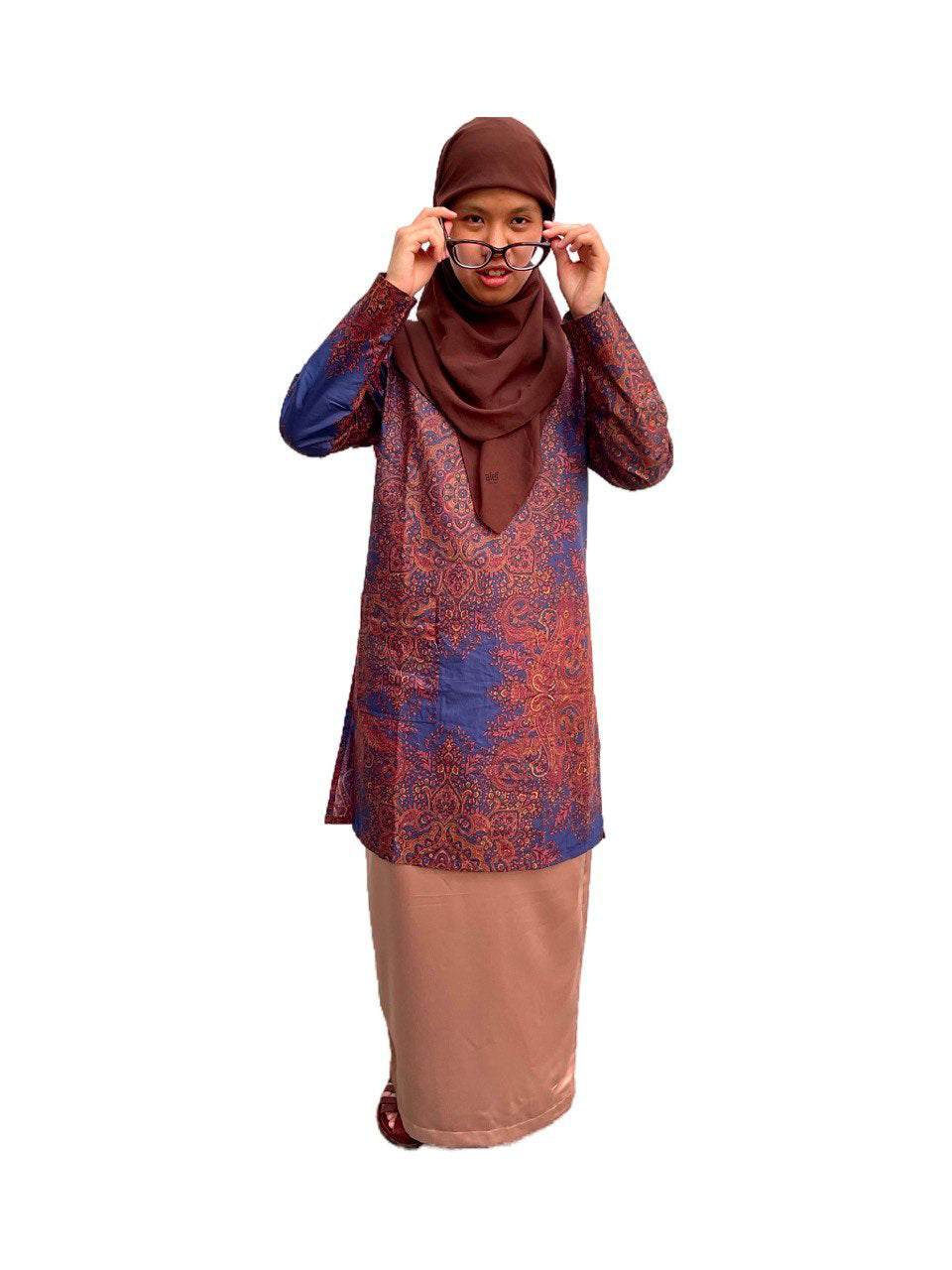 - Cotton Long Blouse in Badoque Print. Round neckline with a button, a pocket at front right, side slits and back darts. Position of Motifs differs for every blouse.