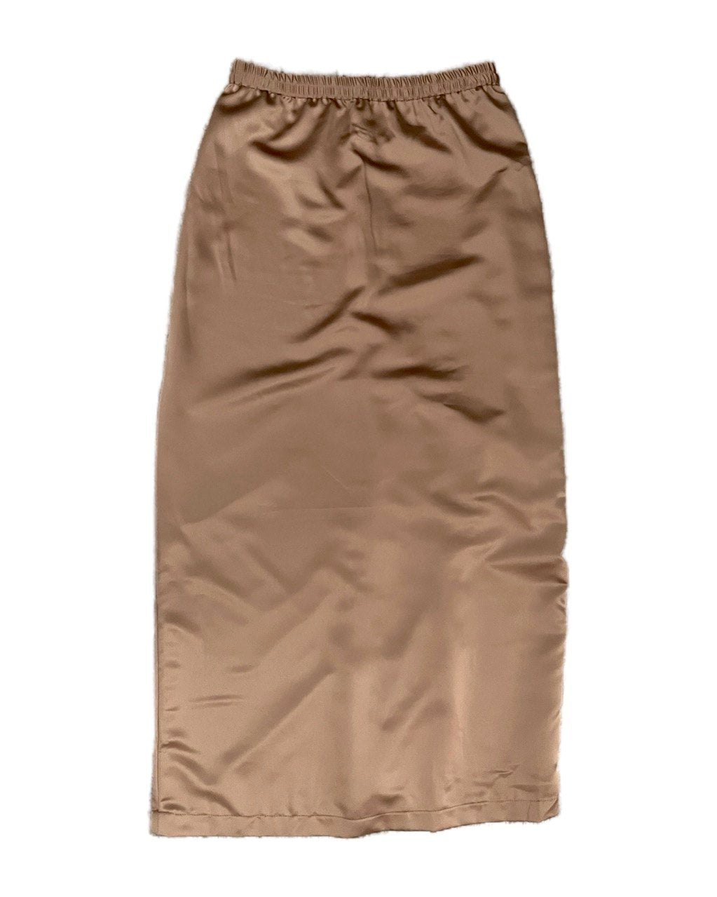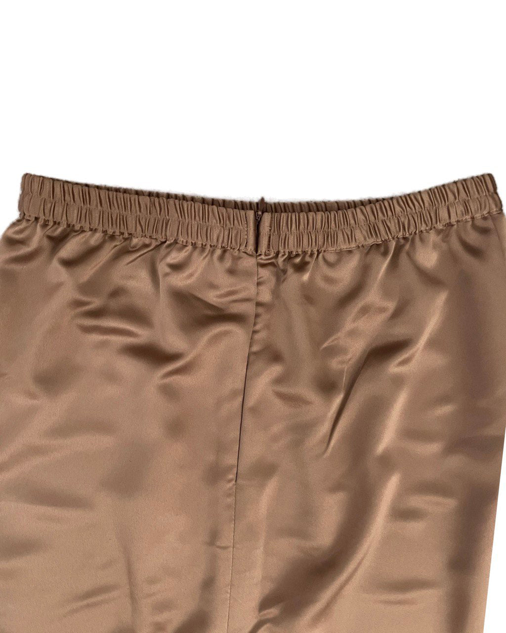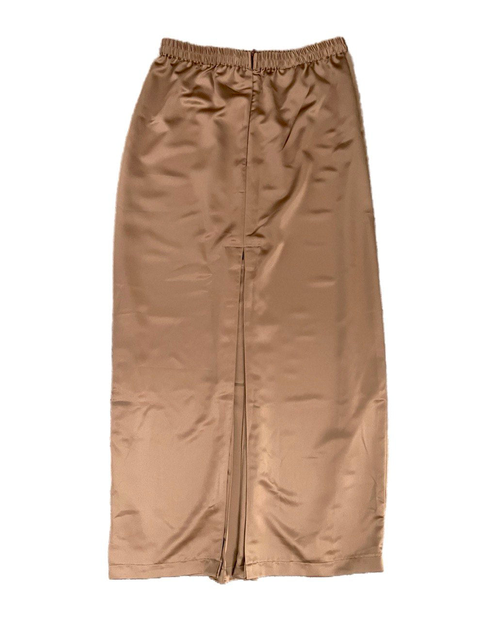 - Skirt Slim Cut in matt satin with pleats at back. Elastic waist band at front and back. Invisible zip at back.