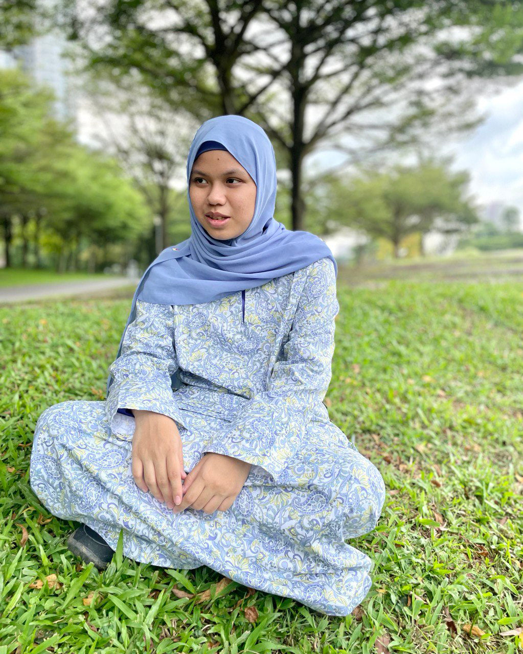 Set in Cotton Paisley Floral light blue/yellow comprises of :